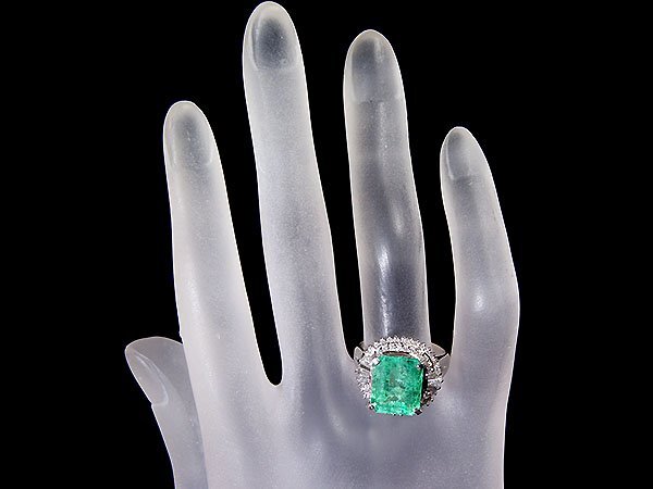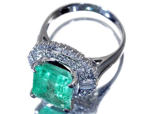 綺麗な色合い放つ超希少な大粒良質天然エメラルド5.00ct&良質ダイヤモンド総計0.80ctを素敵に宝飾した、超高級Pt900リングを1円から特別大放出とさせて頂きます!
