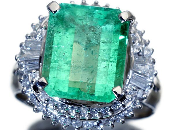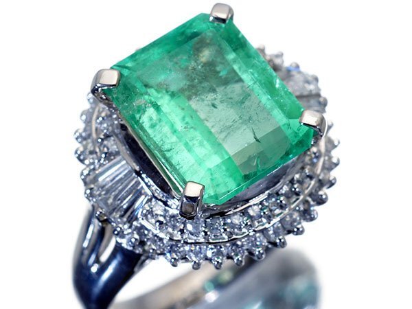 1円~【ジュエリー極】爽快エメラルドグリーン!大粒良質天然エメラルド5.00ct&良質ダイヤ0.80ct 超高級Pt900リング h7573vvk【送料無料】