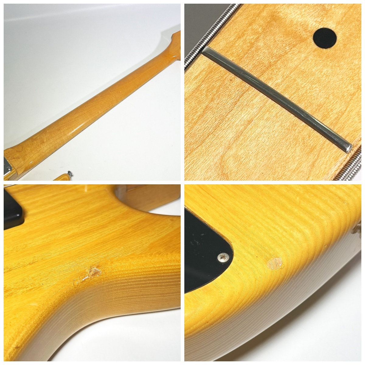 | ●ネックストレート ●トラスロッド左右方向に余裕あり ●ナット幅45mm ●スケール890mm ●フレット5〜6割程 ●弦高12F 5弦3.5mm 1弦2.5mm ●重量5416g |