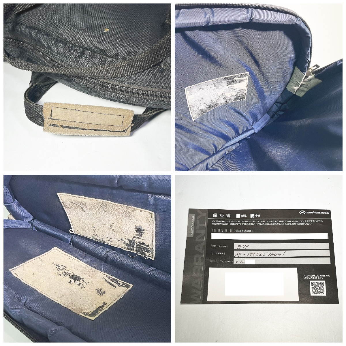 | ●中古品の為細かなスレ傷などございます。 ●5弦のペグがGOTOH製に変更されております(掲載写真参照) ●ピックアップの高さ調節のため、スポンジを仕込んでおります。 ●付属ケースの内装に劣化があり、黒いカスが付着し易いです(掲載写真参照) |