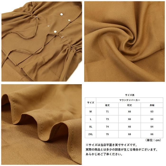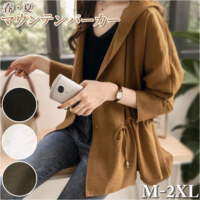 | 商品説明 | ・少し肌寒い季節の変わり目に嬉しいマウンテンパーカーが登場。 ・カジュアルにもすこしキレイめファッションにも着まわせるデザイン◎ ・後はお尻が隠れる丈の長さ。さらにウエストのドローコードを絞れば、裾がふんわり広がって体型カバーにも役立つ! ・薄めの生地だから春や秋に羽織るのはもちろん、夏の冷房、日差し対策にもおススメ♪ |