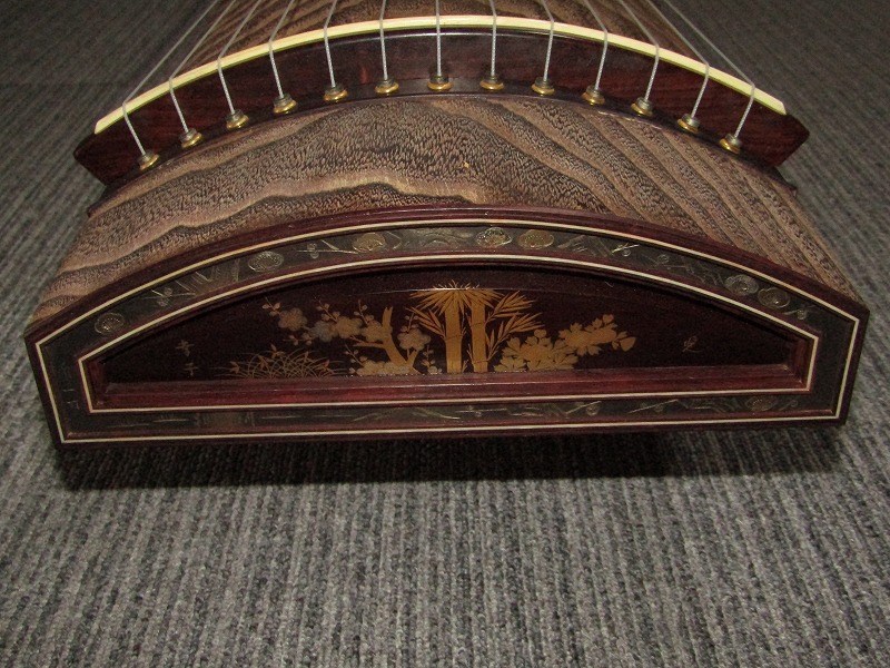 | 高級 演奏会用 琴 くり甲 13弦 綾杉彫り 玉緑包み 在銘 彫金蒔絵 十三弦 箏 和楽器 ij12-8363[GGG] | |