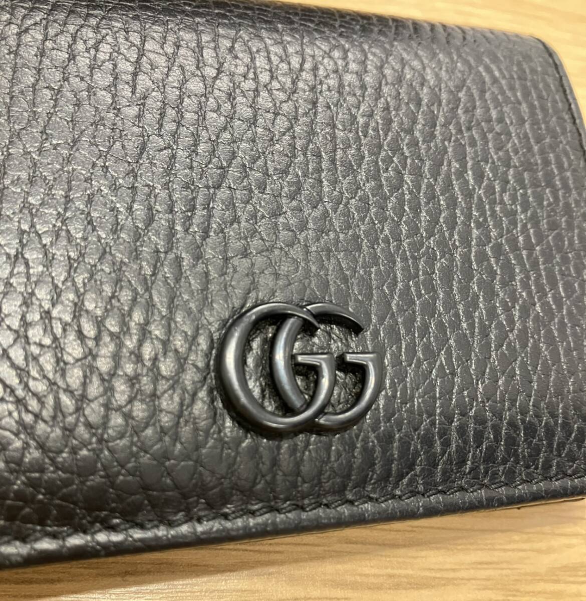#2036 【本物】超美品★GUCCI★グッチ★GGマーモント★コンパクト財布★レア黒ロゴ★黒★ブラック 現状品