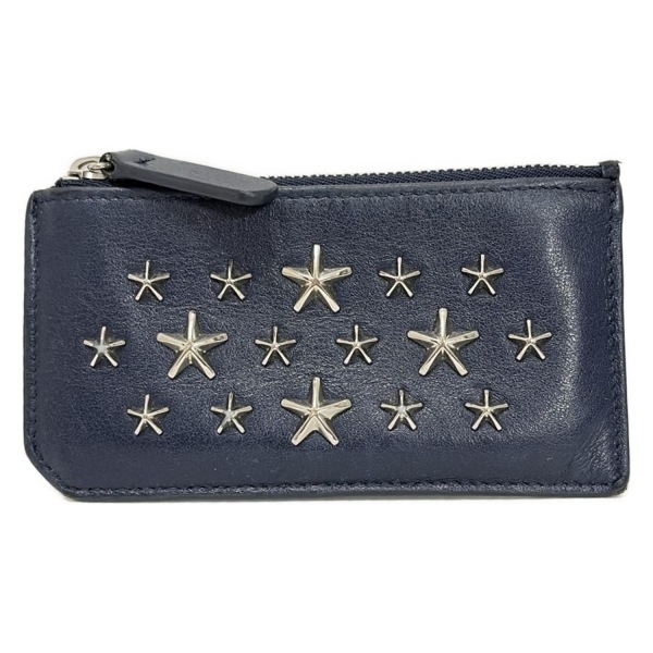 ジミーチュウ JIMMY CHOO コインケース - レザー ダークネイビー×ゴールド スター(星)/スタッズ/カードケース付き/ホログラムシールなし