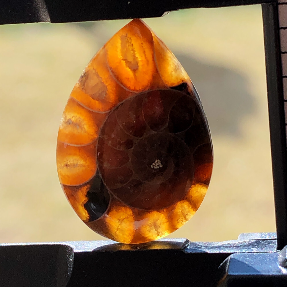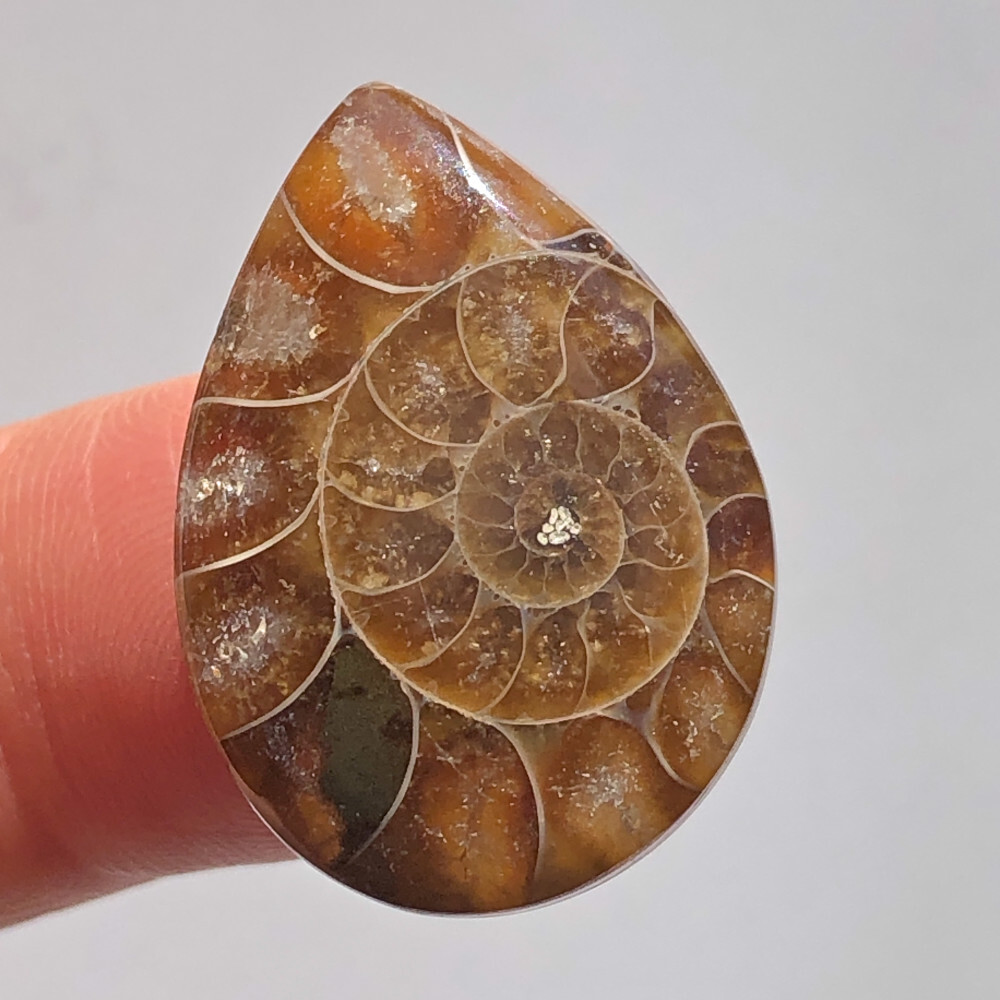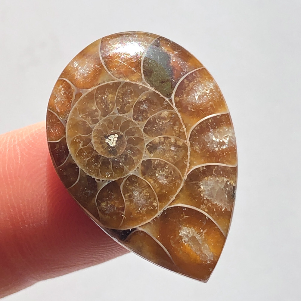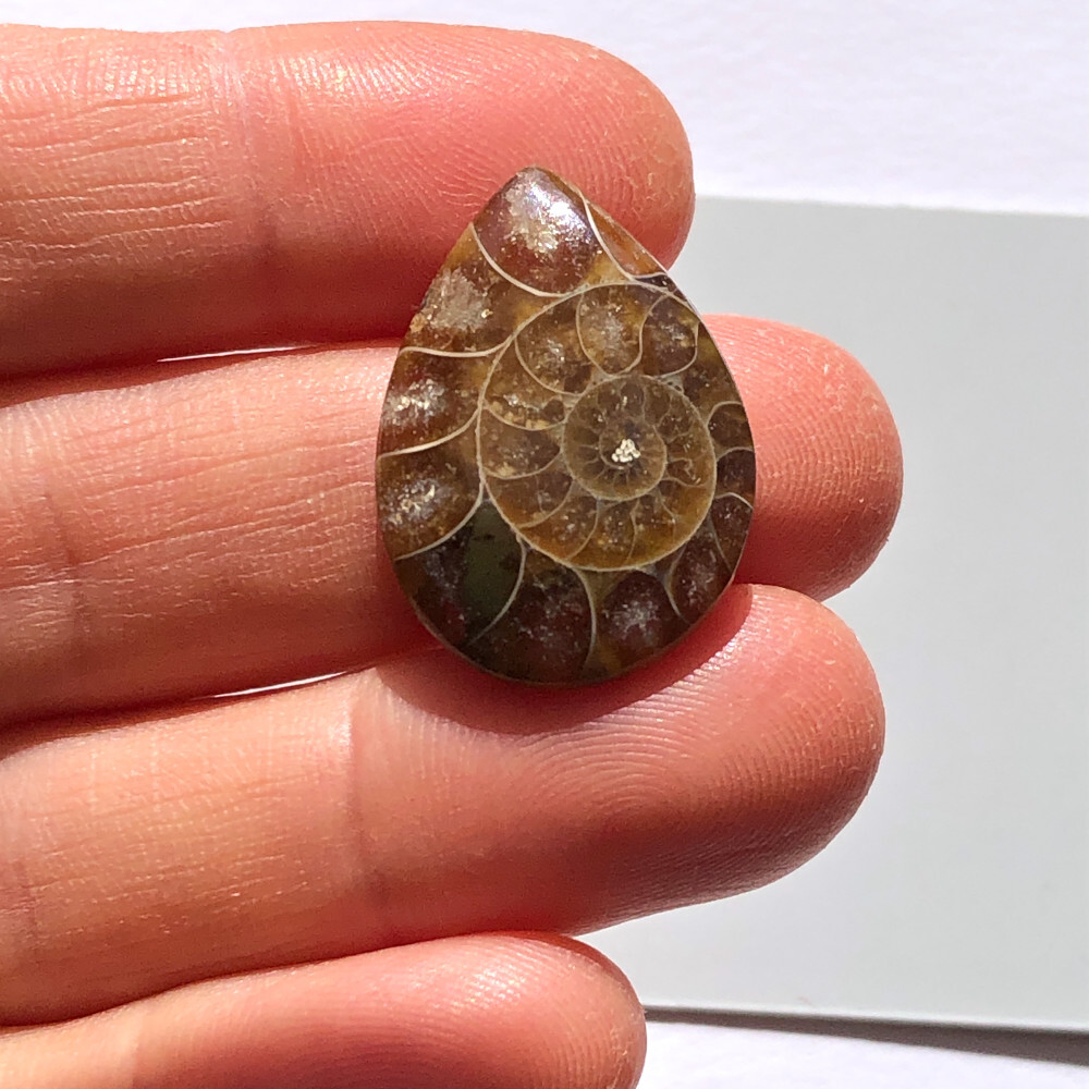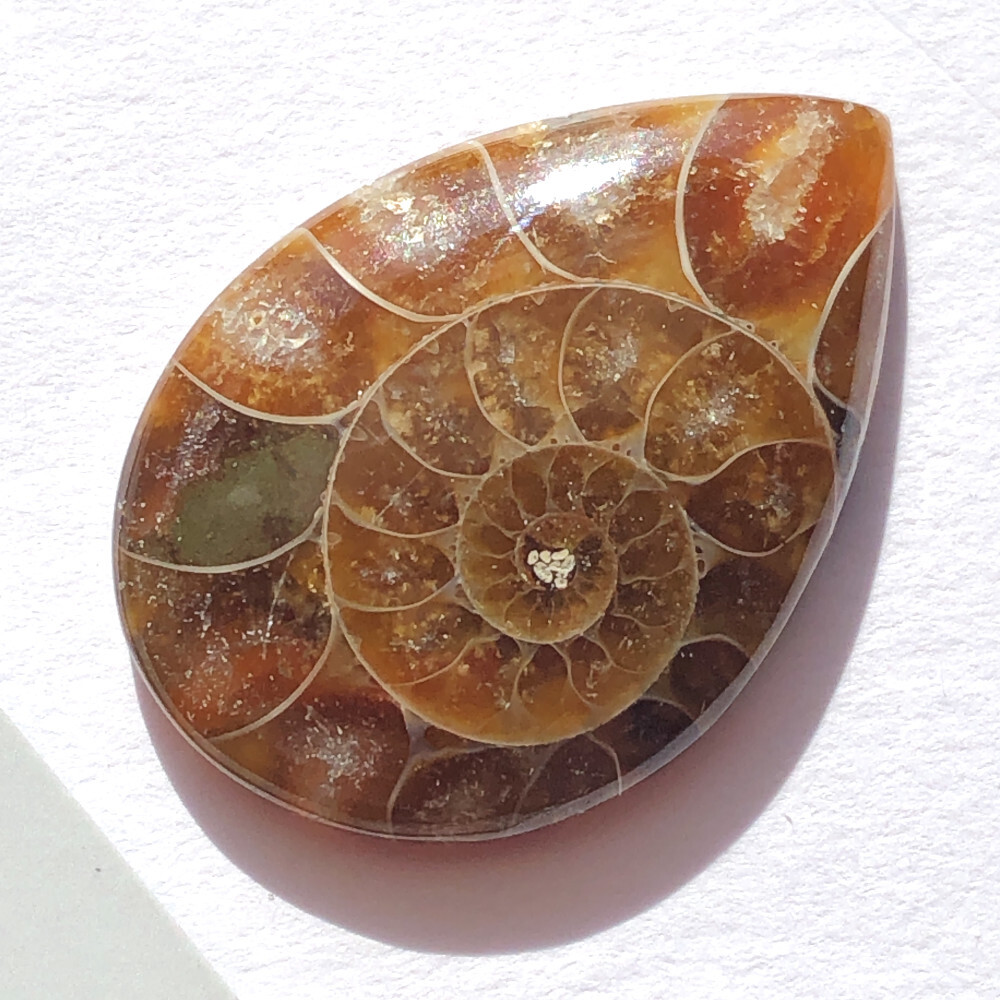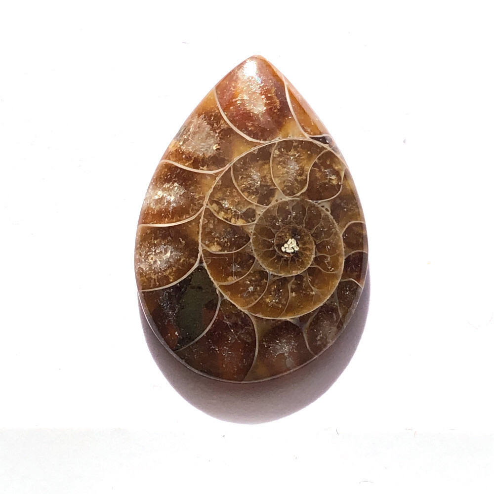 アクセサリー素材として使いやすく研磨された、アンモナイト化石のしずく形ルースです。
