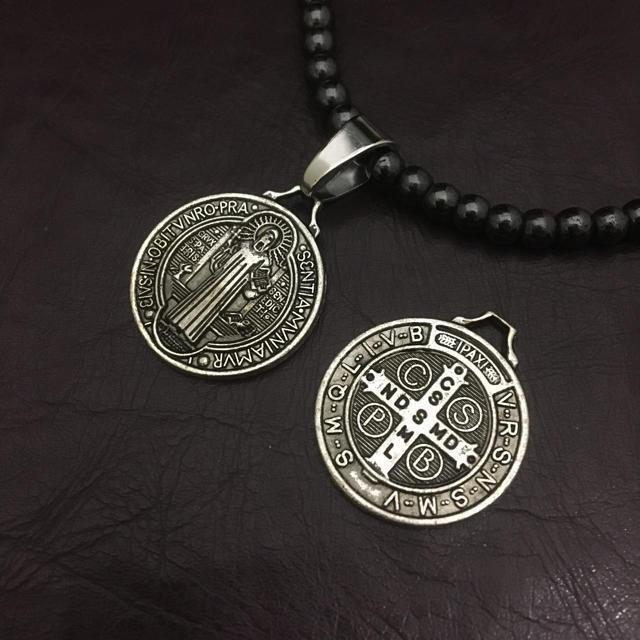 トップはお洒落なアンティーク風シルバーキリストメダルコインで男性女性問わず人気のデザインです。
