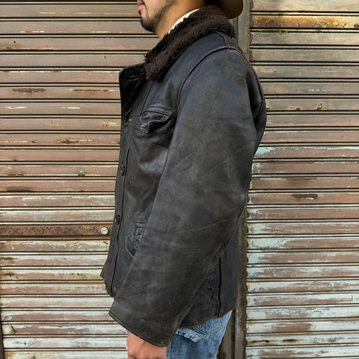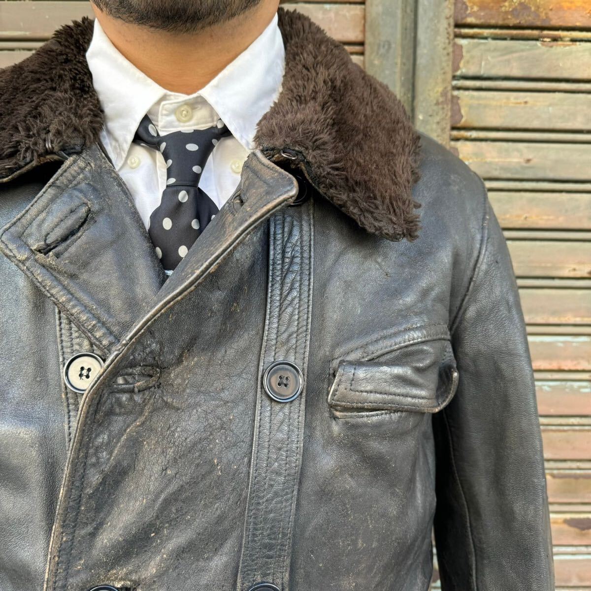 40s フランス製 襟ボア コルビジェジャケット Le Corbusier L French Vintage ウール 襟 コルビジェ Le Corbusier ヴィンテージ ラムスキン フランス軍 レザージャケット モーターサイクル 50s