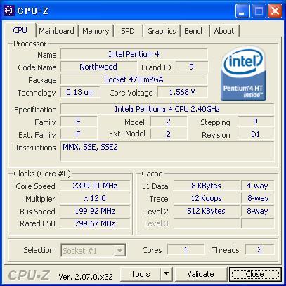 NorthwoodコアのINTEL Pentium4 2.40 GHzです