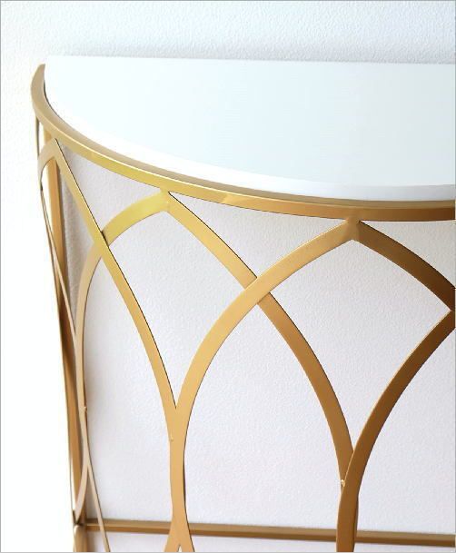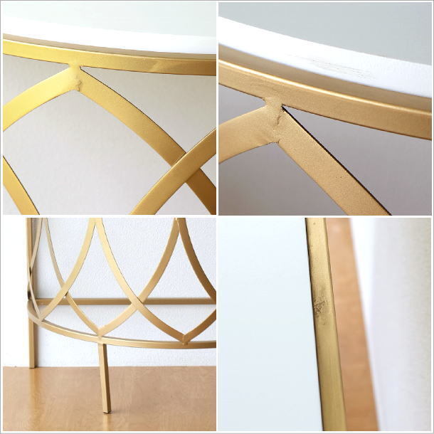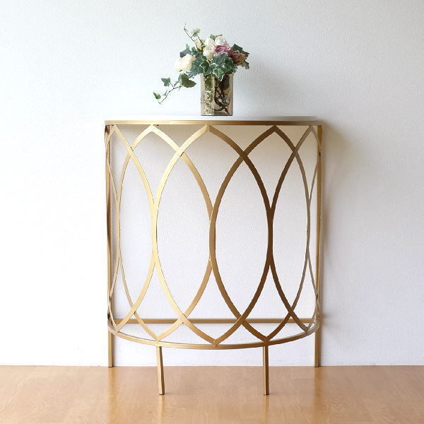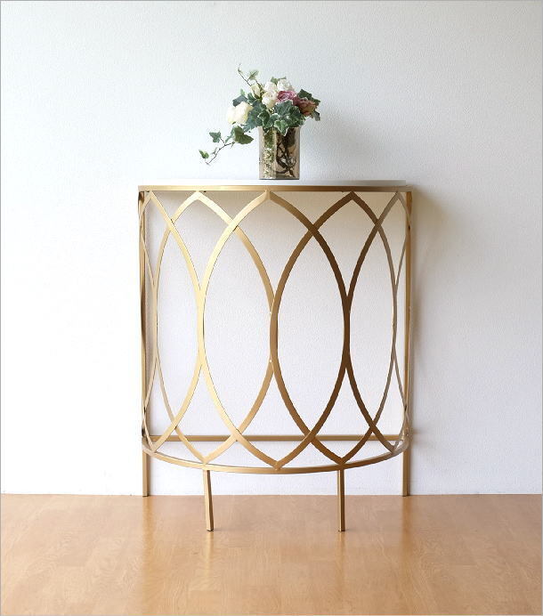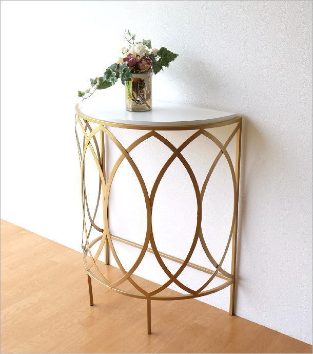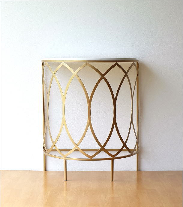 | マットなアンティークゴールドのフレームに ホワイトのテーブルがマッチした ラグジュアリーなコンソールテーブルは 高級感と優しい雰囲気のある ハーフムーンコンソール リボンが舞うようなアイアンの曲線は どの角度から見ても美しいフォルム 玄関でお客様を迎える花台や リビングで個性的なインテリアとしてお勧めです 商品名 : ゴールドアイアンのコンソールテーブル 商品番号 : kwt2894 全体サイズ(cm) : 幅76×奥行38×高さ90 天板のサイズ : 幅72.5×奥行35 材質 : アイアン 木(MDF) 重量 : 7kg 生産国 : 中国 ※アイアンや天板の塗装剥げや色斑、小傷のあるアンティーク風の商品です ※ガタつく場合がありますのでご理解の上ご検討ください (フェルトを添付しますので調整にご利用ください) |