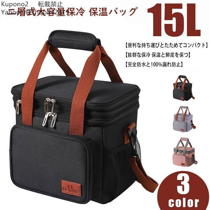 特価 保冷バッグ ランチバッグ 2way 二層式 保冷保温 15L 大容量 黒色 保温 断熱バッグ クーラーバッグ キャンプ アウトドア ブラック