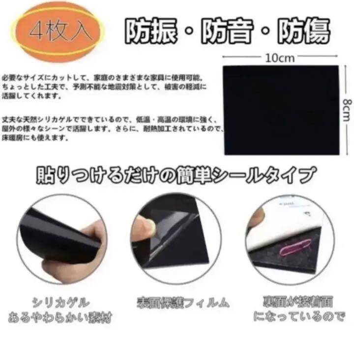 10cm×8cmの正方形のシートが4枚入っ、自宅内のテレビやタンス、机といった重たいものには、耐久性もあり耐荷重も高い天然ゴム製の滑り止めシートをおすすめします。ちょうど四隅に貼れて無駄がありません。
