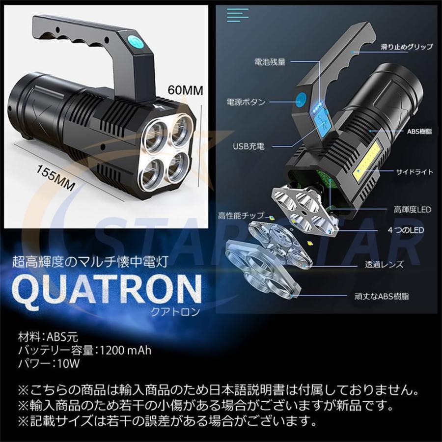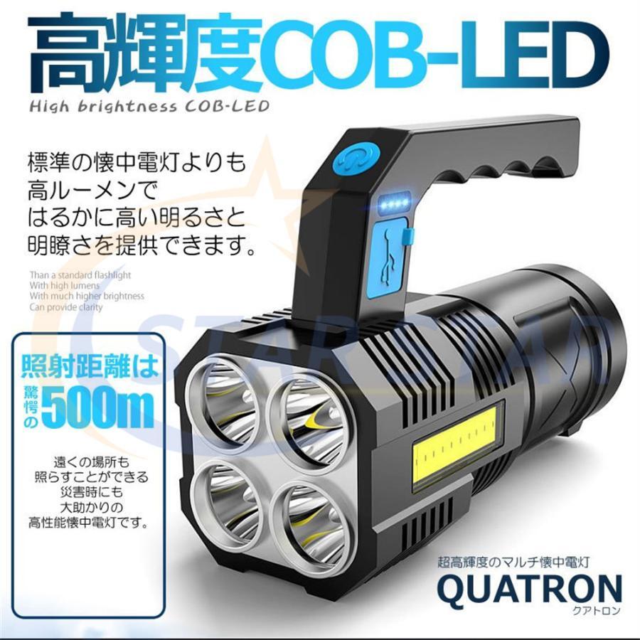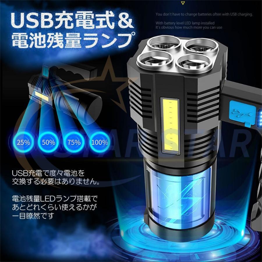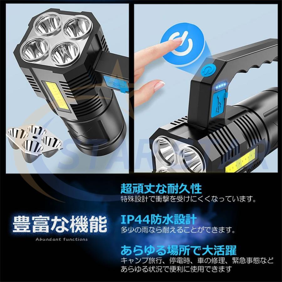 USB充電式 懐中電灯 サーチライト 爆光 マルチ ポータブル 4つの点灯 照明 ランプ 緊急 照射 防水 防災 地震 軽量 小型 登山 釣り用 作業用