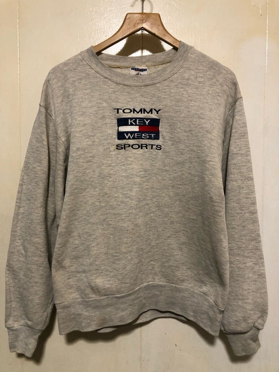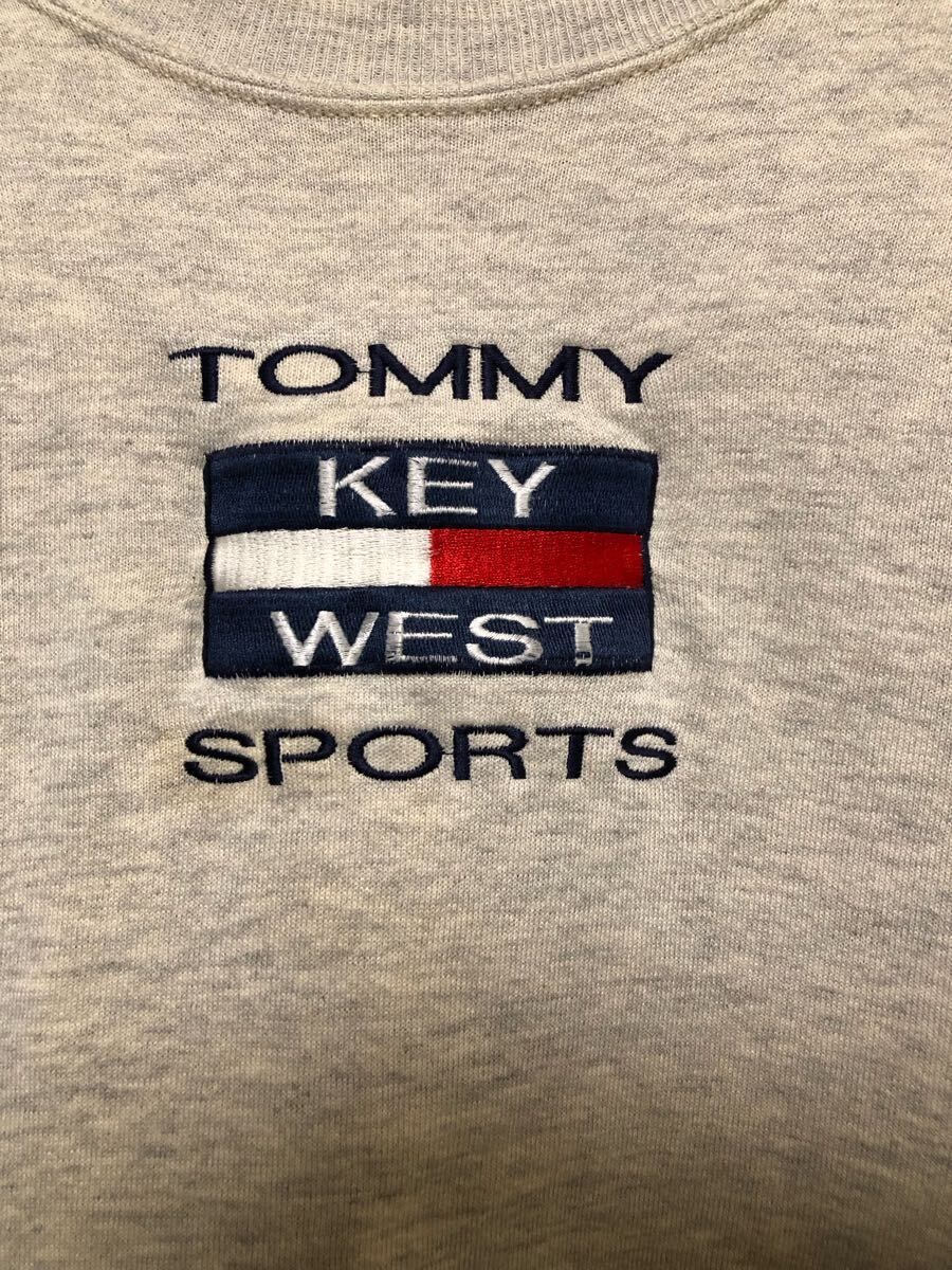 グレーのトレーナー、TOMMY KEY WEST SPORTSのロゴ入り。