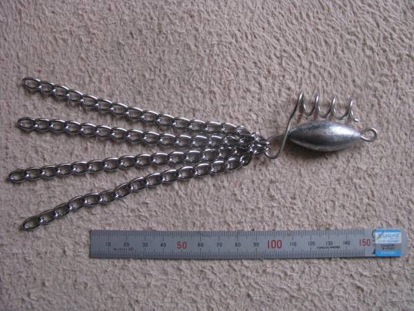 使用法は、根掛かりの際、らせん状の針金をラインに絡ませて投下し、