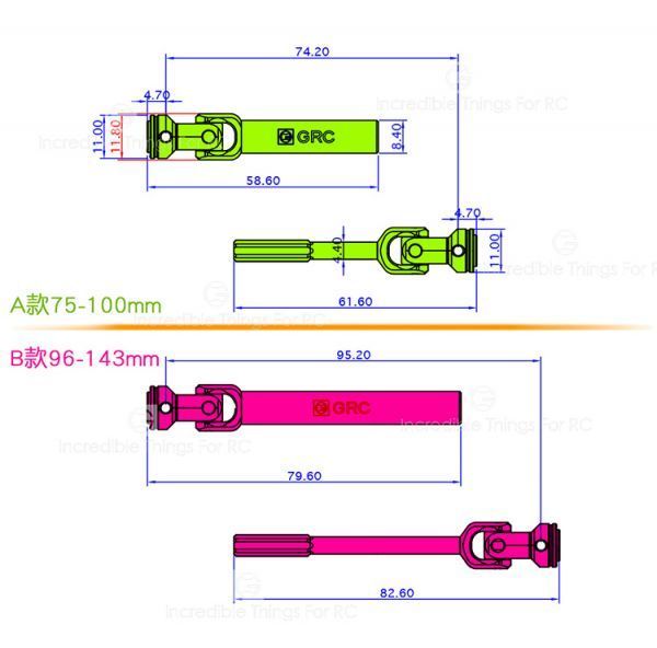 GRC製 GAX0148B 96mm-143mm/50g/TRX4-6用 車種別適合(Model# 82056-4) ディフェンダー ヘビーデューティー スチールドライブシャフト