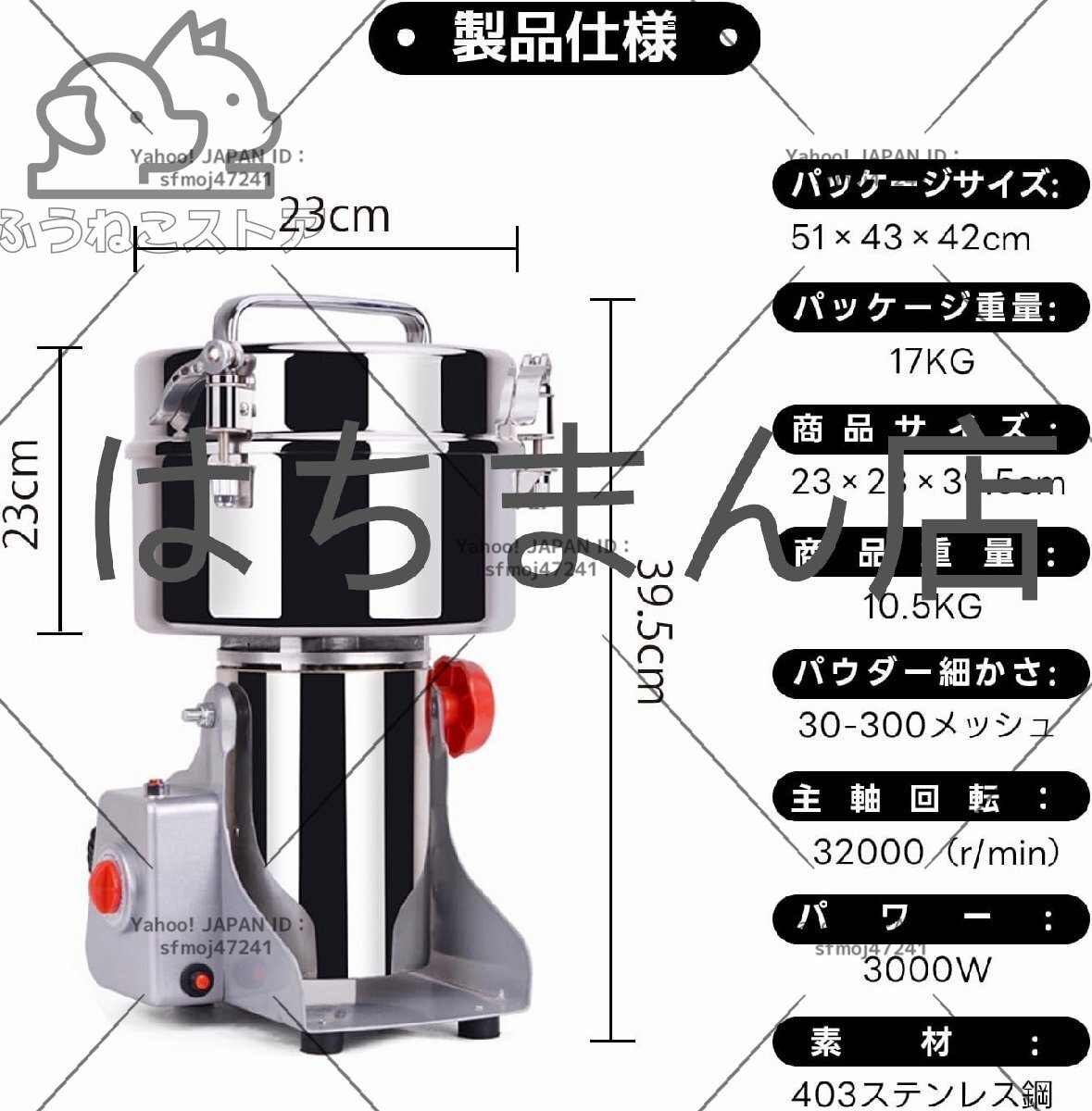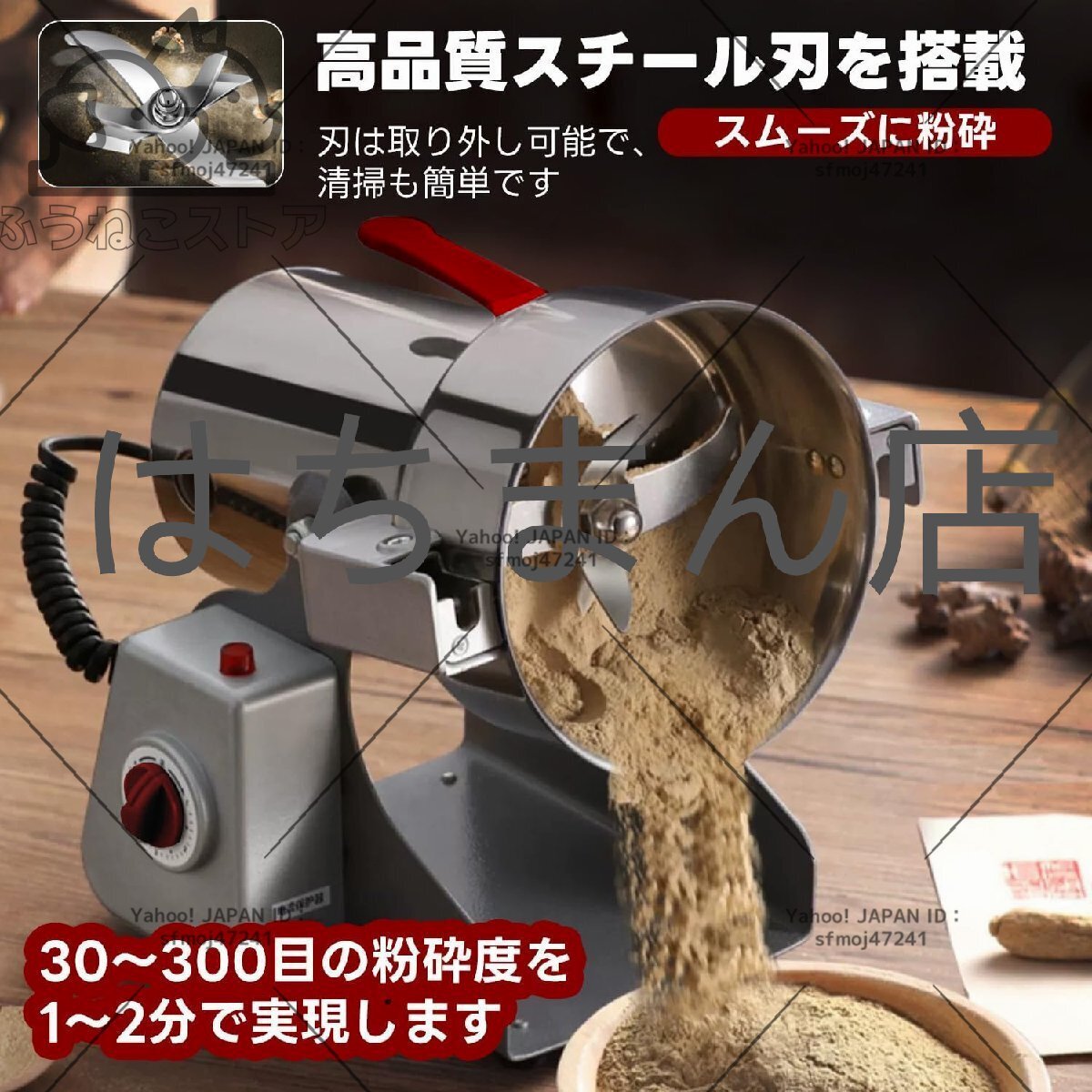 1.【製品仕様】:2500g超大容量、3000Wハイパワー、32000 rpm/ min回転速度、わずか1~2分で乾燥した材料を30~300メッシュのパウダーに変える!日本の電圧に対応済み!