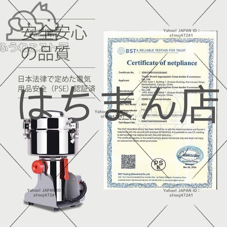 2500g粉末ミル 粉砕機 電動ミル 電動粉砕機 製粉機 粉末ミル 電動グラインダー スパイスミル 穀物 穀類 電動微粉砕機業務用【PSE認証済】