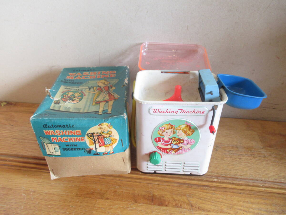 ヨネザワ玩具 米澤玩具 昔の輸出用ブリキのおもちゃ 当時紙箱付き 洗濯機のおもちゃ ブリキ×プラ