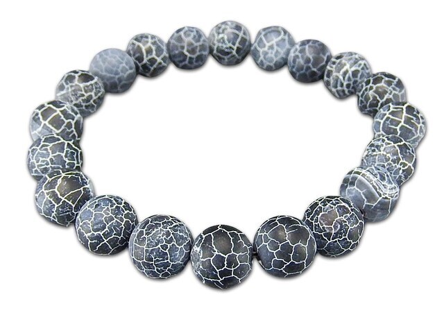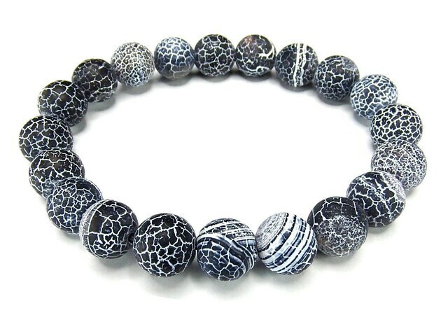 レア天然石黒フロストドラゴンアゲート約10mm数珠ブレスレットM22-02プライム