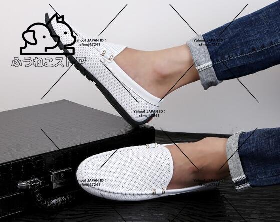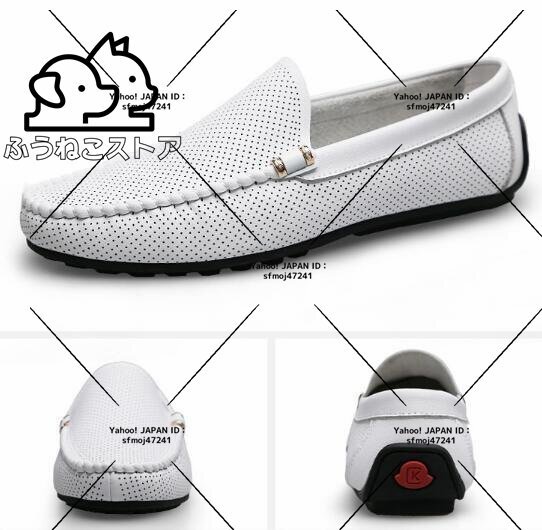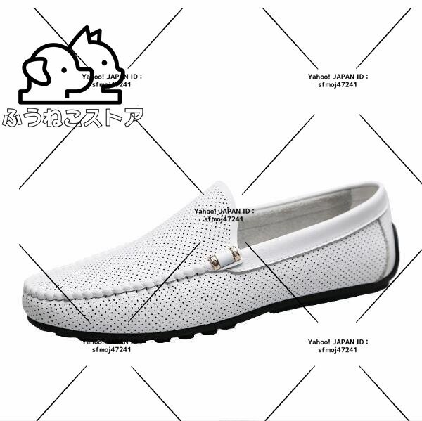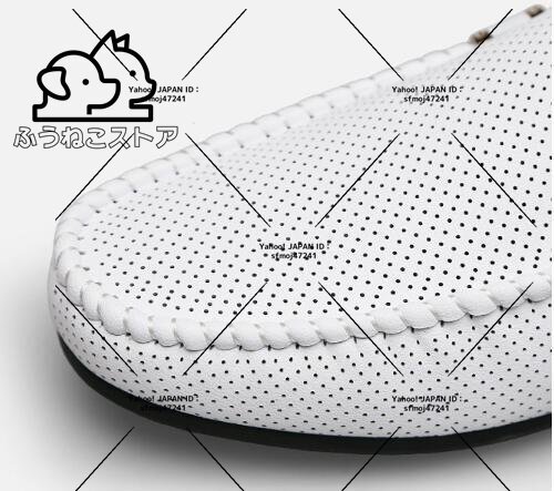 人気品 サイズ選択可 ローファー スリッポン メンズ 紳士靴 透かし彫り メッシュ サンダル カジュアル ドライビングシューズ 白 26.5cm