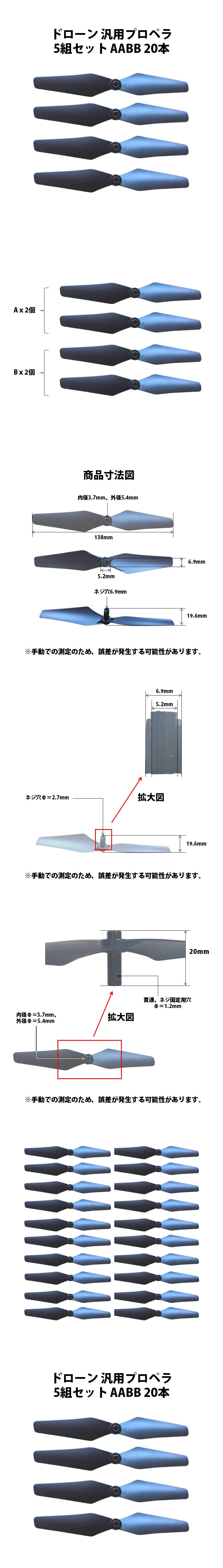 | 内容物:汎用プロペラ5セット。AABB合計20枚です。※寸法の詳細は商品図をご参考ください。※ご購入前に穴直径をご確認ください。 |