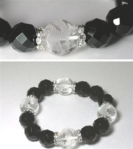 四神ブレス 64面カットオニキス14mm&水晶四神16mm No41
