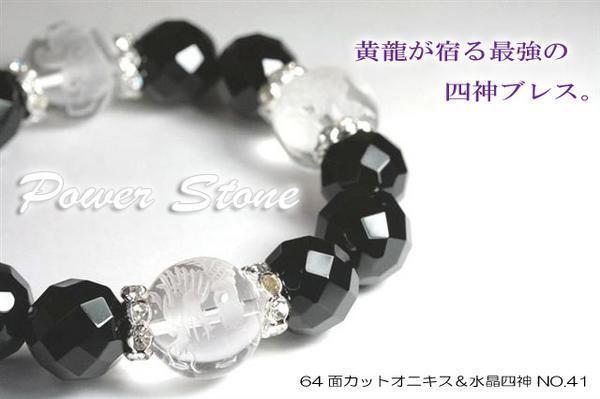 天然石 パワーストーン ブレスレット 64面カットオニキス 水晶 四神 パワーブレス 風水 運気上昇 黄龍 四神獣 No41