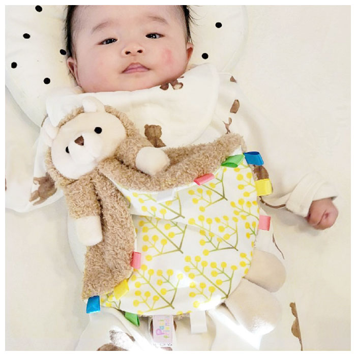 | 素材 | [ぬいぐるみ]ポリエステル100% [おしゃぶり]シリコン [アタッチメントリング]シリコン ※日本の安全基準(食品衛生法)に適合しております。 |