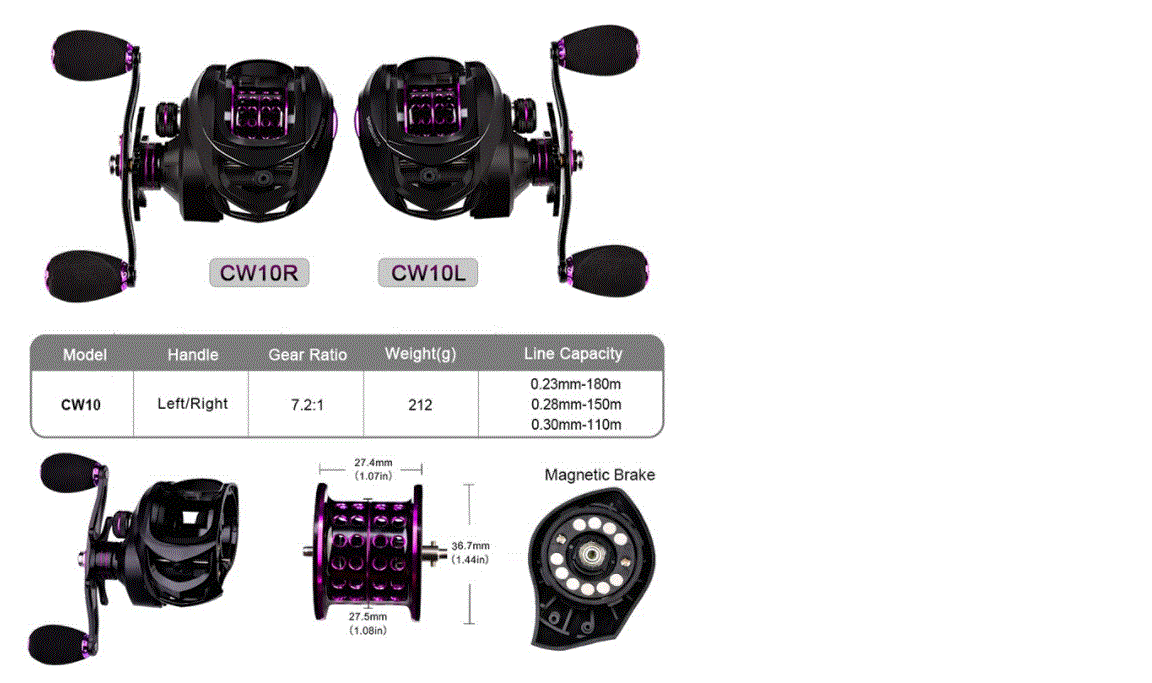 送料無料 Proberos-フィッシングリール,最大ブレーキ力7.2:1,高速,最大抗力10kg,金属スプール,12個の磁気ブレーキ 1から2