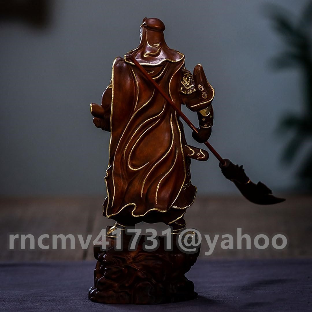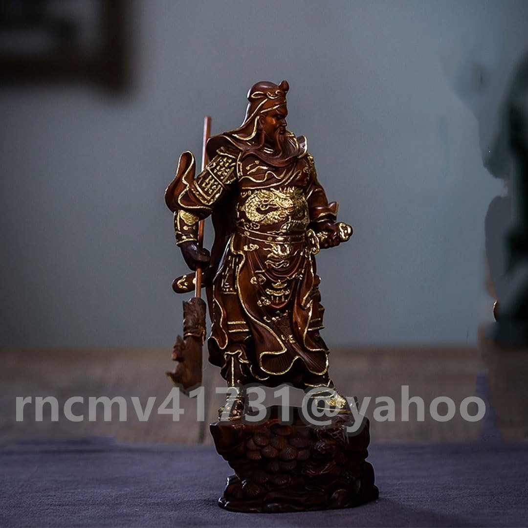 木彫り 仏像【関羽像】三国志 武財神(木製:ツゲ 金泥仕上)古色 総高約19.5cm 商売繁盛 家内安全