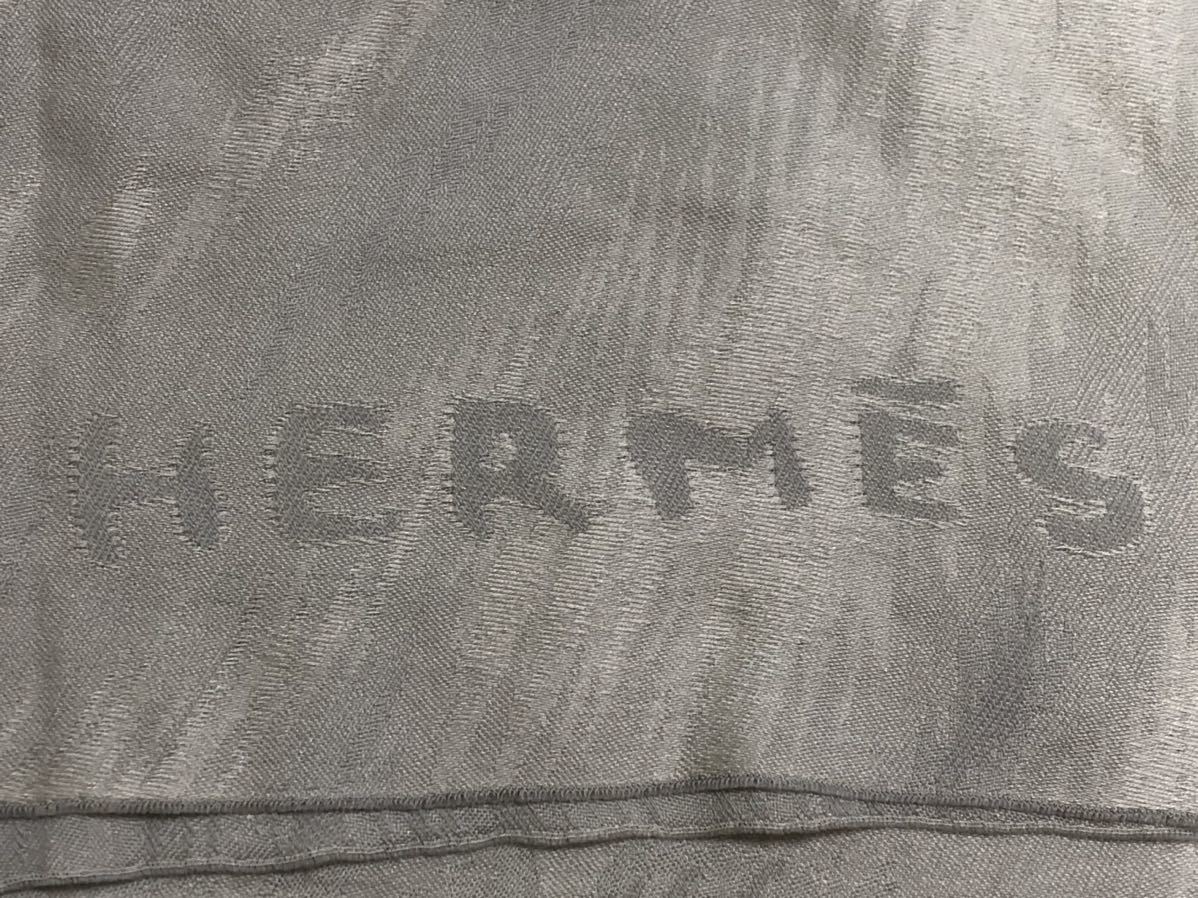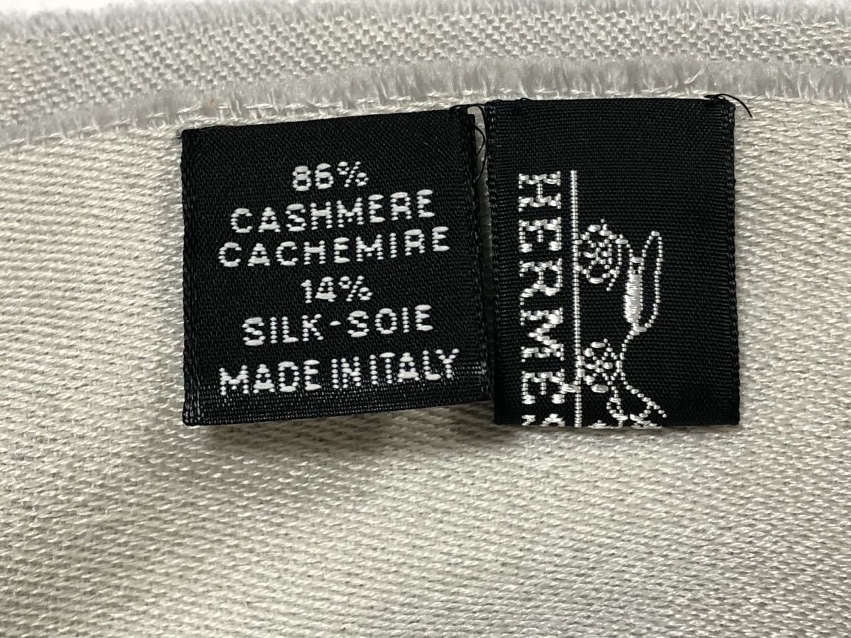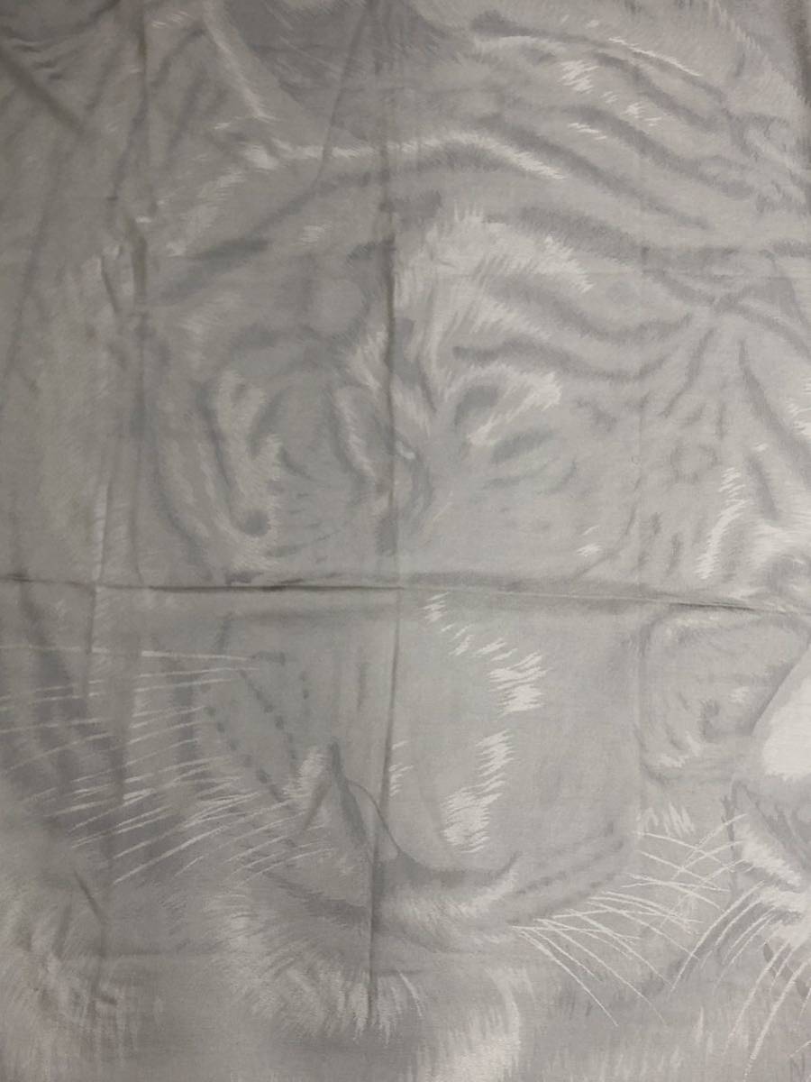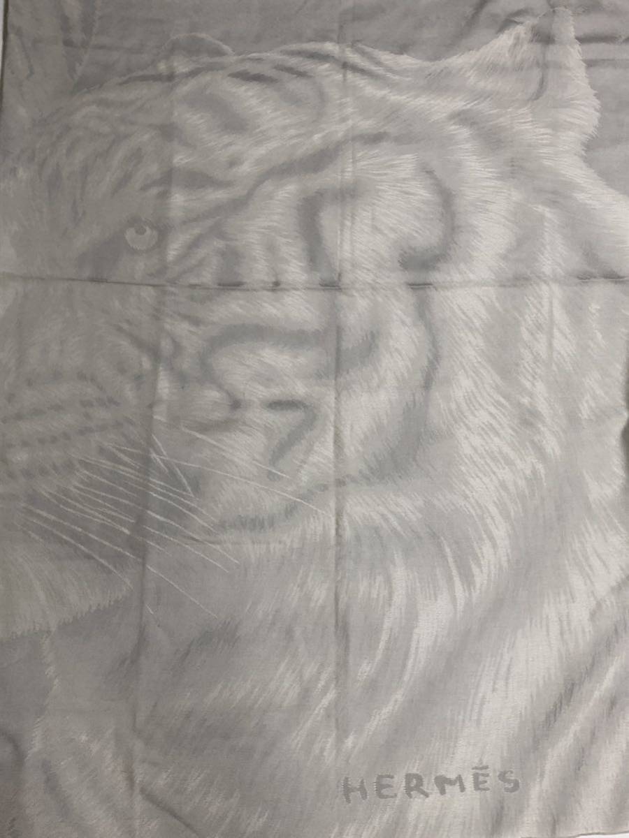 HERMES カシミアシルク大判ストール ホワイトタイガー模様 素材:カシミア86%・シルク14% サイズ:全長約220cm×横幅約150cm とても大きく迫力がある柄で存在感抜群です! |