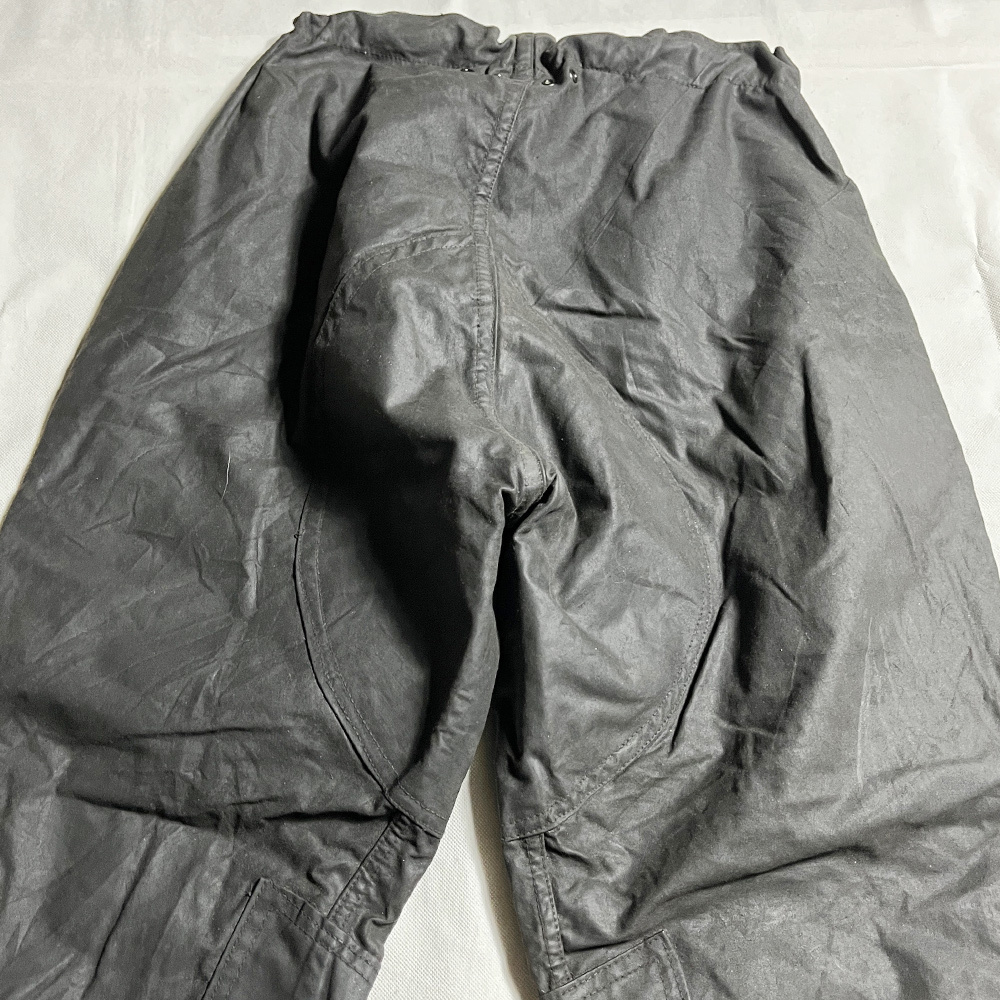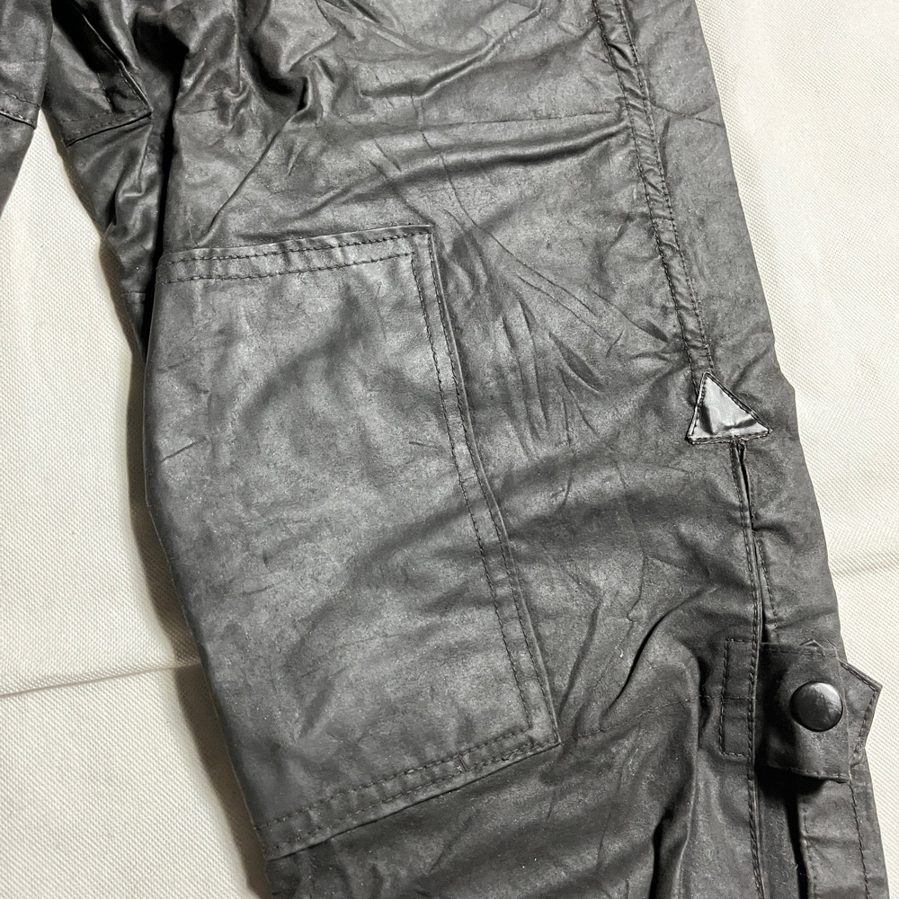 1936年にジョンバブアーの孫のダンカンバブアー氏がバイクレース用のライダースジャケット「インターナショナル」を発表したのが初まり。高機能かつ洗練されたインターナショナルは、トライアルレースのイギリスのナショナルチームにも採用され、ライダーススーツの代名詞となる名品として現代でも高いに人気を誇ります。6デイズトライアルサーキットに出場した多くのレーサーや、1964年に出場した俳優のスティーブマックイーンも着用していたことでもかなり有名です。(レースの際、上下セットで着用されておりましたが、こちらはパンツのみとなります。)