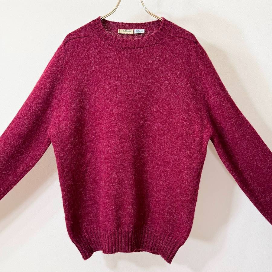 希少《 Mint Condition / Made in England 》80s 90s 極上品【 LLBean 英国製 ビンテージ ボルドー シェットランド 丸首 セーター L 】