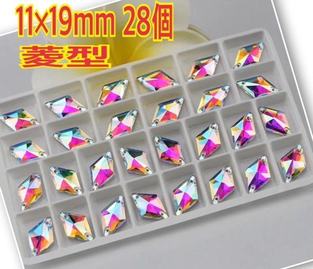 菱型 11×19mm オーロラ ガラスビジュー装飾用 高輝度 ソーオン キラキラ