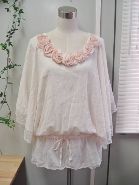 ☆HoneyHoney☆薔薇コサージュ付ふんわりレースチュニック/a112