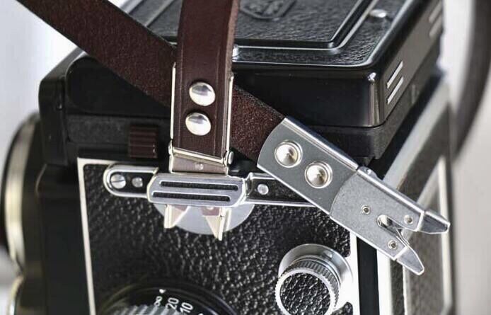 新品 本革 Rollei ローライ 二眼用 ストラップ カニ爪 2.8F/3.5F用 色コーヒー