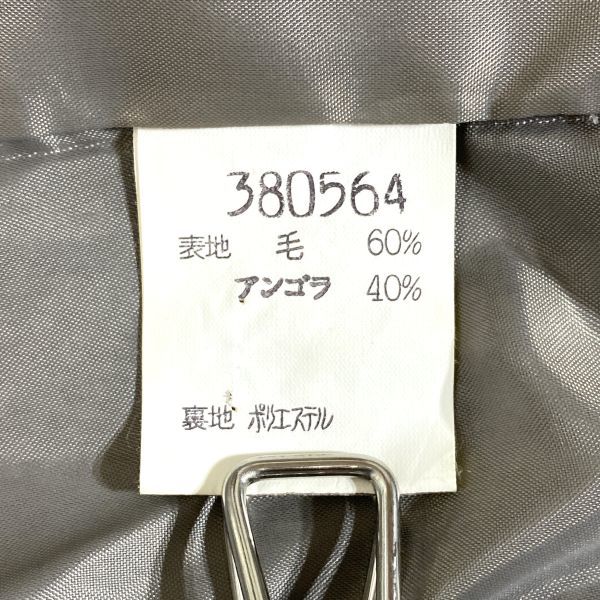 ミセス向け アンゴラ混 ロングコート 襟付き Lサイズ ヘリンボーン グレー アンゴラ40%毛60% 大きいサイズ ライトグレー