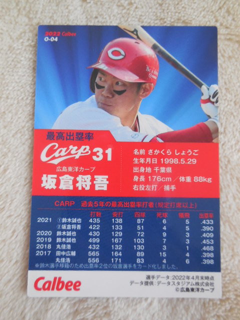 ★新品★カルビー★野球チップス★広島東洋カープ★坂倉将吾★プロ野球カード2022★