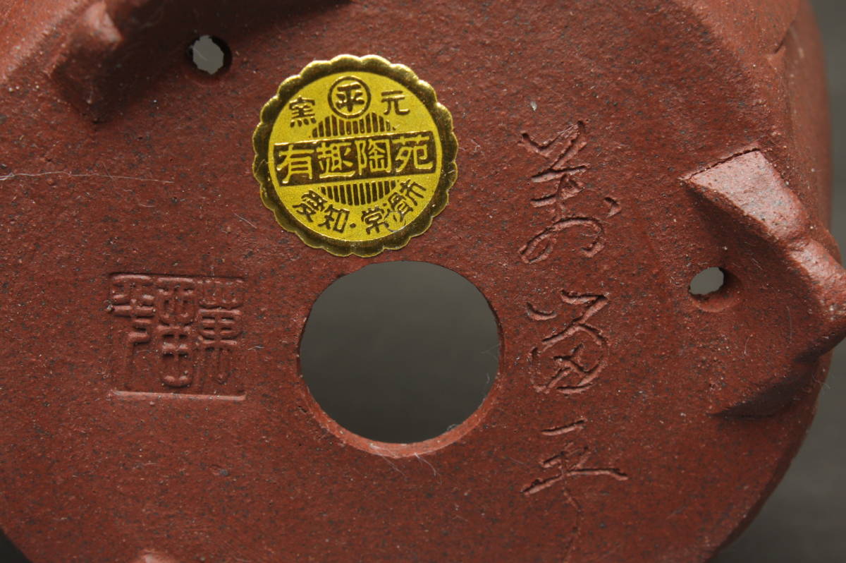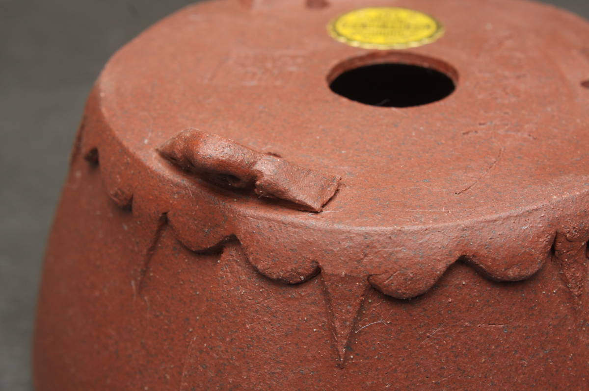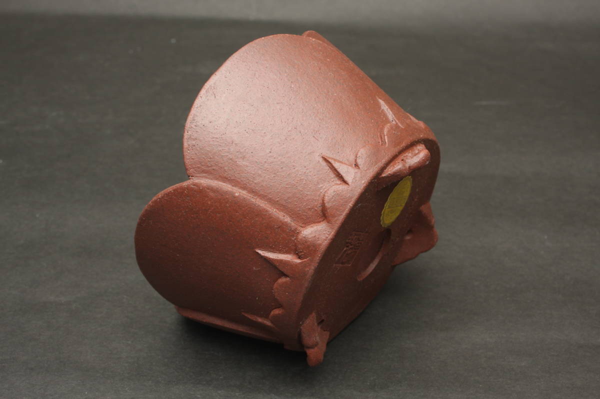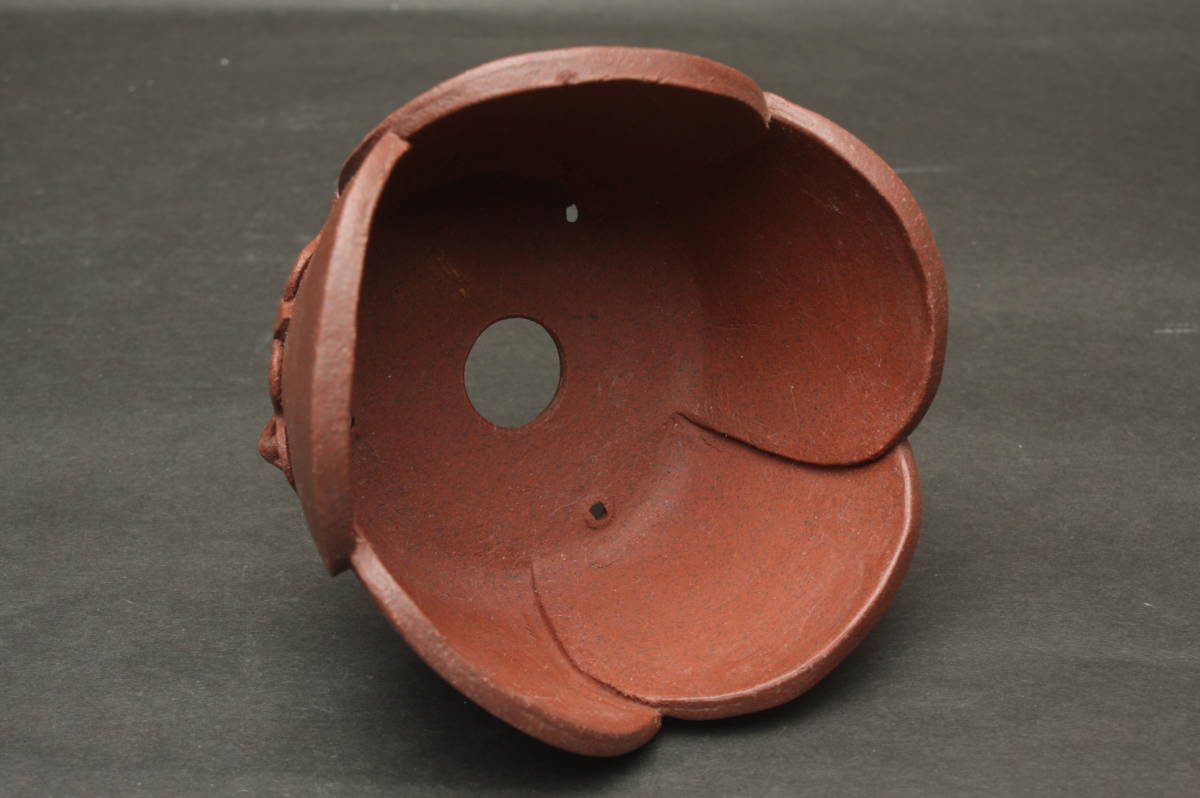 4100 明治26年 珍品 貴重品 杰作 径11 瑞宝章 渡辺敬深 萬留平 有趣陶苑 栞 朱泥 桃花泥 花型 花弁 蓮 苔鉢 豆鉢 ミニ盆栽鉢 鳥足
