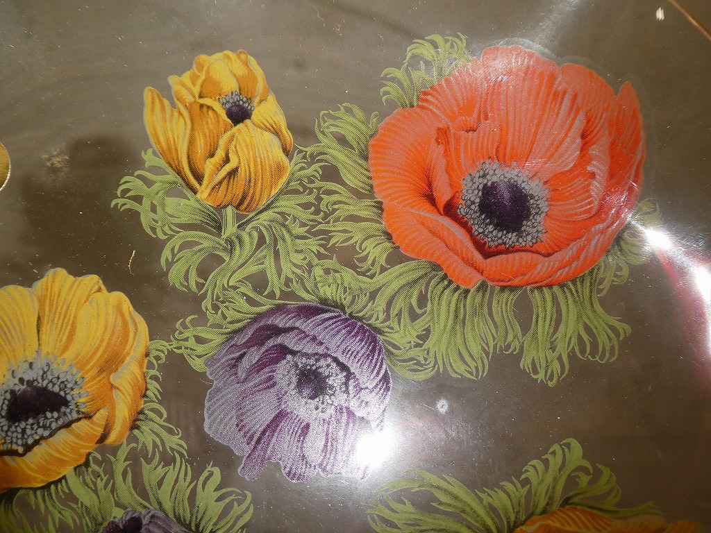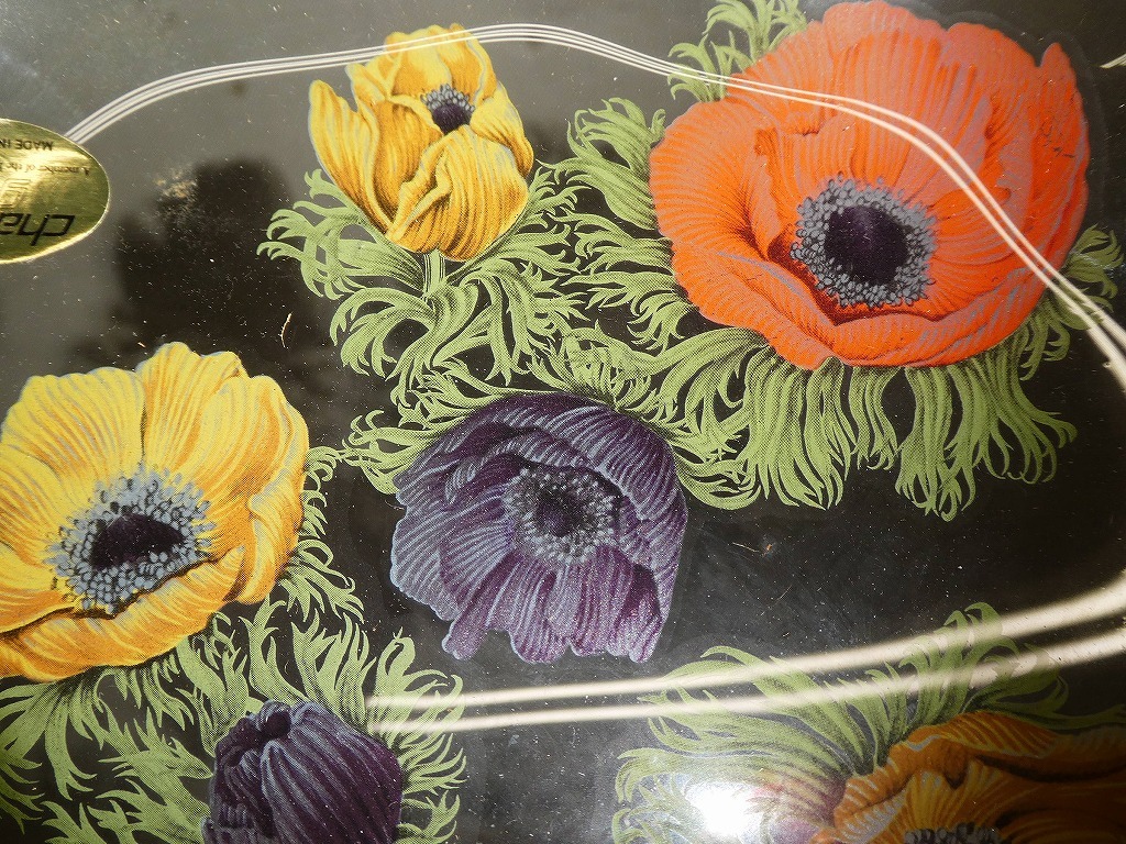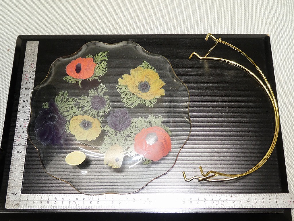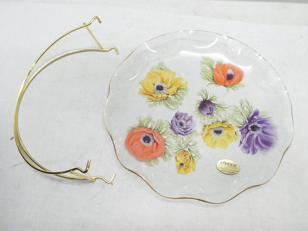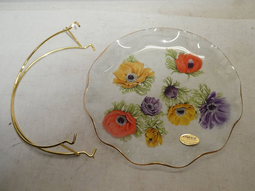 ●CHANCE GLASS ENGLAND製 持ち手付き フラワープレート皿 盛皿 菓子皿 ケーキ皿 チャンスグラス社 ガラス工芸 花柄 ピルキントン●