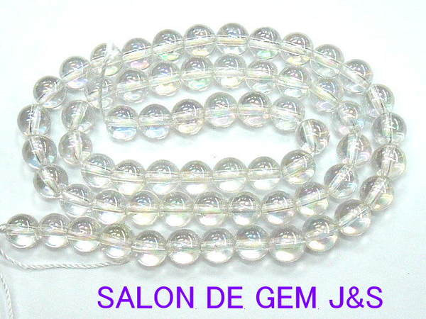 【極上ルース】【オーロラ】【高級天然ブラジル産アクアオーラクリスタル(本水晶)6.0mm珠】1本:約40cm前後糸通し