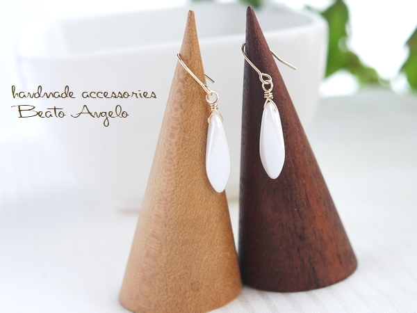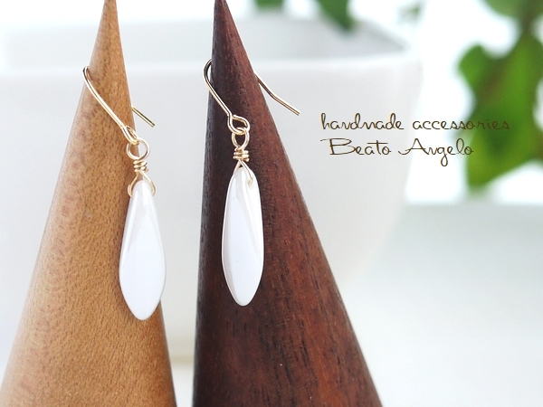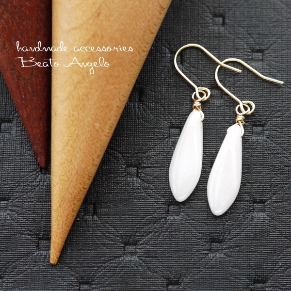 ◆+angelo+K14GF チェコダガーの一粒ピアス(p-152)スノーホワイト シンプル チタン 樹脂 イヤリング