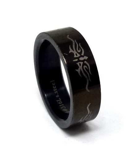 送料無料☆特価♪U10 size09号 ステンレスリング 指輪 トライバルデザイン ブラック