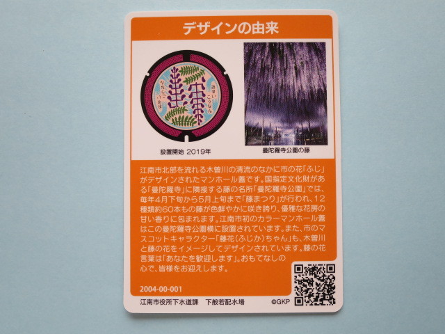 ★★初版ロット001★マンホールカード★ 江南市 藤の花 愛知県 送料¥85~ 4枚まで同梱発送可能 初期