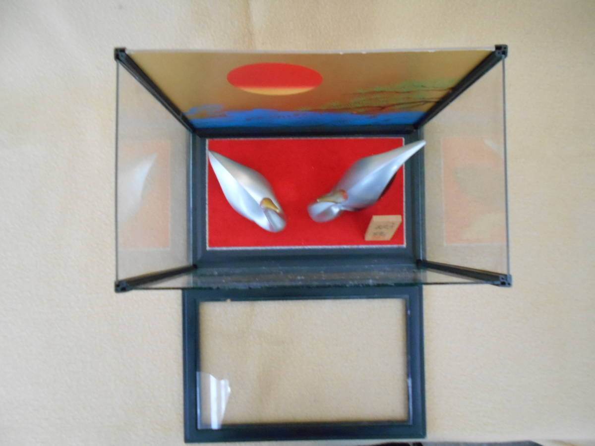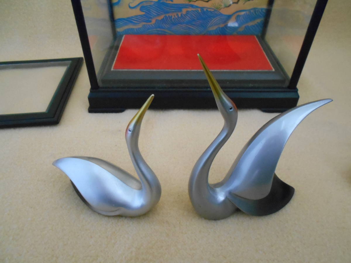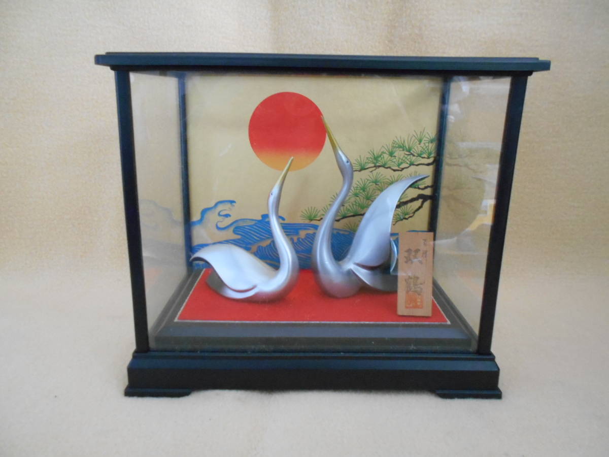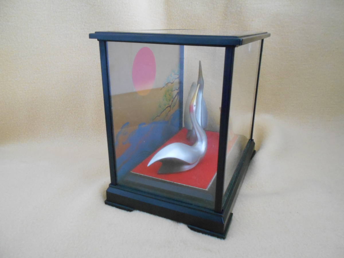 ●昭和レトロ 吉祥 双鶴 夫婦 飾り置物 ガラスケース入り 縁起物 現状品 M9794みち | |
