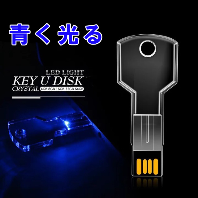 新品 光る KEY 鍵 USBメモリ ブルー フラッシュメモリ USBドライブ 8GB usbメモリ 面白い雑貨 プレゼント ビンゴ景品 匿名配送 送料無料
