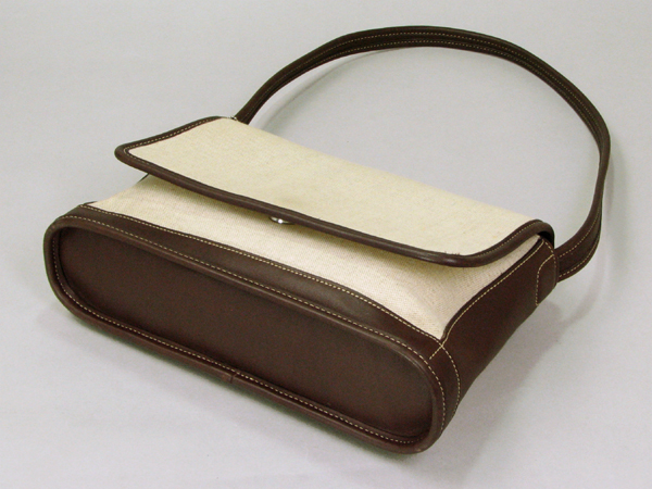 | 特徴 | 良質な革素材とキャンバス地を使用したセミショルダーバッグです。外側にポケット1、内側にファスナー式ポケット1あり。どんな服装にも合わせやすいバッグです。ストラップ長さ72cm(調節不可)。上ぶたの裏側に少々、汚れあり。 | ||