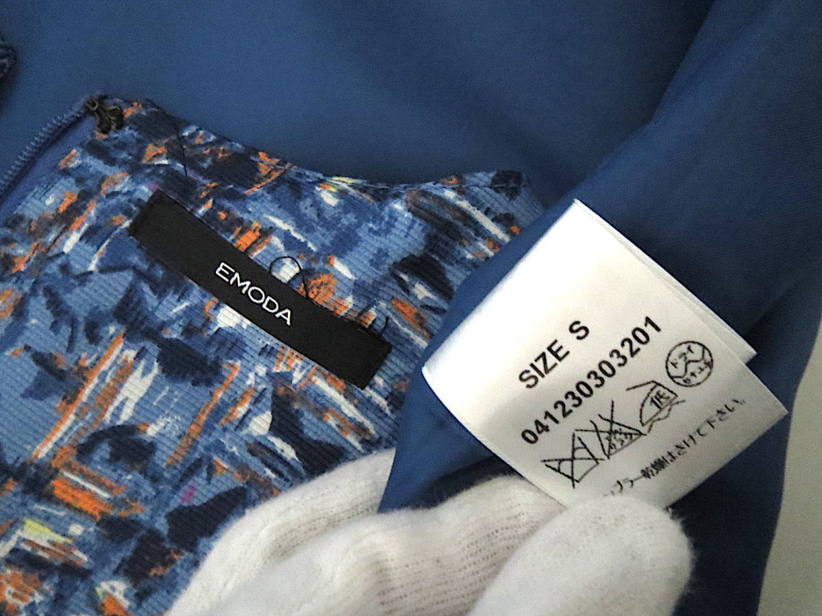 二点落札で送料無料! E2A17 EMODA エモダ ノースリーブ ワンピース レディース S ブルー 青 スカート ひざ丈