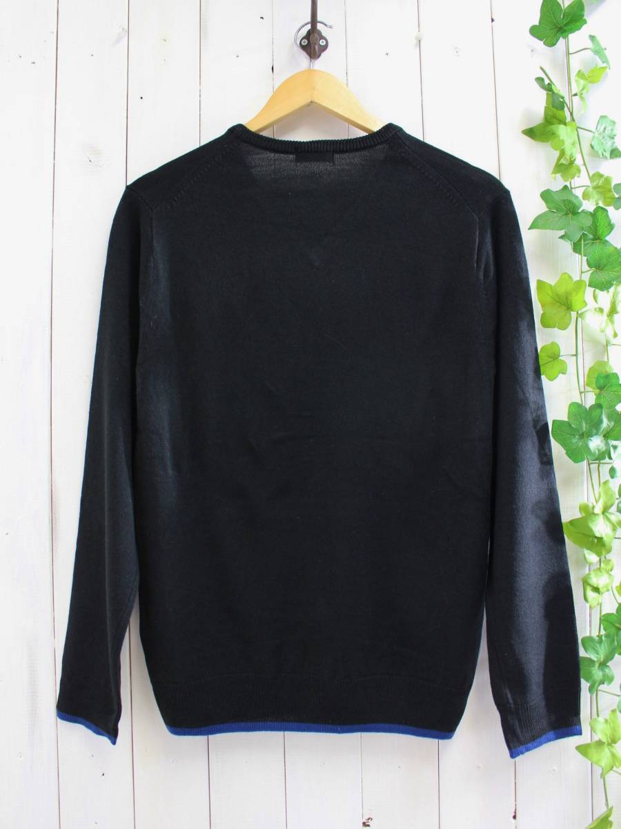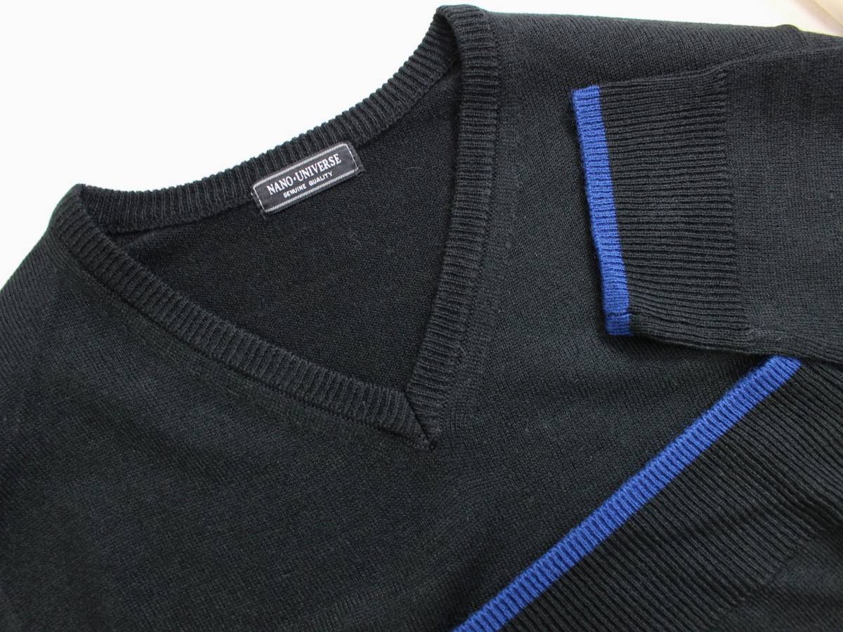 新品*nano universe ナノユニバース*バイカラーVネックニット(M)ブラック×ブルー【571-7993】