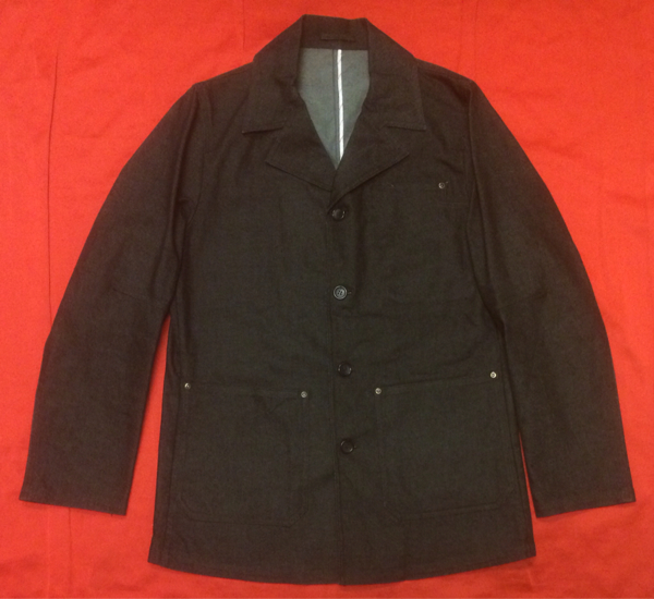 ブラックデニム生地を使用した4つボタンテーラードジャケットになります。前身丈近くにポケット2つと左胸ポケットが付いています。色もまだしっかりと残っていますので、使用に伴い色落ちも楽しんで頂けます。